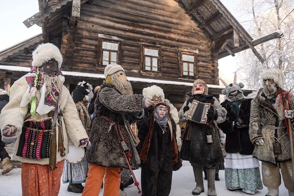 وفي بعض المناطق الروسية، لا تزال عادة “كوليادكي” حاضرة، وهي أغان طقسية تراثية تُؤدّى خلال الفترة الممتدة من عيد الميلاد حتى عيد الغطاس. وكان الشباب، في السابق، يطوفون على المنازل مرتدين أزياء تنكرية، أشهرها أقنعة الماعز أو الدب، بهدف نشر البهجة والفرح، انطلاقا من اعتقاد قديم مفاده أن البداية المرِحة للعام تضمن سنة سعيدة، وهو ما انعكس في المثل الشائع: “كما تستقبل عامك، تقضيه”.