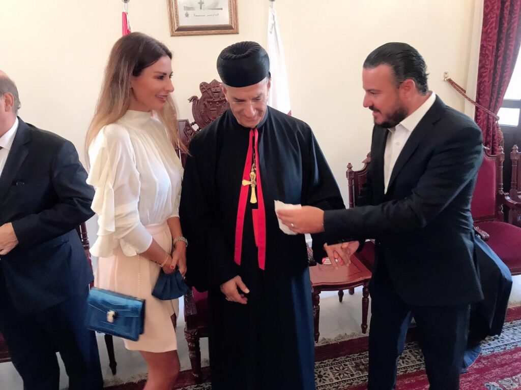 كاتيا كعدي وعريسها يباركان زواجهما بزيارة الى غبطة البطريرك