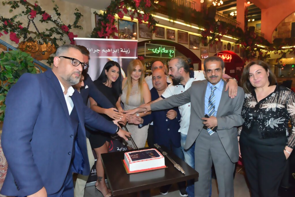 بحضور سعادة سفير كولومبيا بالشرق الاوسط الاستاذ إيلي الترك وعدد من أهل الصحافة والاعلام ومن الاصدقاء قام مدير عام ورئيس تحرير موقع خبر عاجل الاعلامي زكريا فحّام بمفاجأة خاصة للأديبة زينة جرادي ، حيث جمع عدداً متواضعاً من الاحبة متداركاً ظروف وباء كورونا ليحتفلوا معها بنجاح روايتها ضمن سهرة عشاء في ” قهوة عزمي ” وإلتف الحضور حول زينة مهنئاً بنجاحها ومباركاً لها بهذا الانجاز الكبير ، خلال السهرة تمّ قطع قالب الحلوة الذي زُيّن بصورة غلاف الرواية من ثمَ قام فحّام بتسليمها درعاً تكريمياً بإسم أسرة خبر عاجل لنجاحها بعملها الاول .