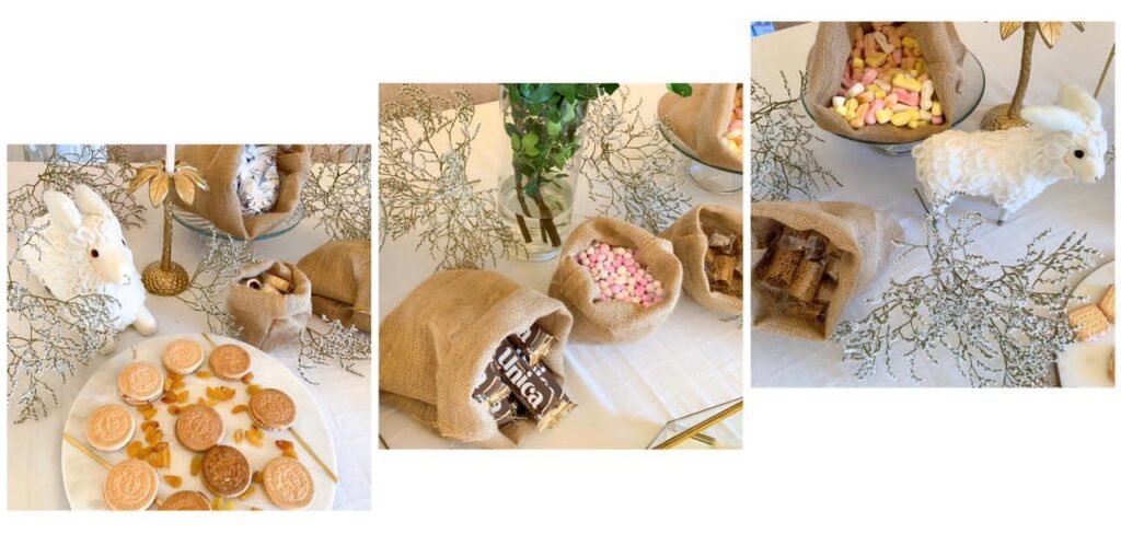 واعتمدت رشا مبدأ البساطة في التزيين مراعاةً للظروف الإقتصادية الصعبة التي يمر بها لبنان، حيث اختارت أصناف الحلويات اللبنانية الصنع وخاصة القديمة منها، لتعيد متابعيها الى أيام الزمن الجميل وخاصة طفولتهم التي لم تخلو منها، مثل بسكويت الدبكة، والراحة مع البسكويت، والتي أضفت النكهة اللبنانية الأصيلة على سفرتها. الى جانب ذلك، استخدمت أكياس الخيش؛ اليدوية الصنع، للزينة ووضع الحلويات والسكاكر فيها، بعيداً عن البهرجة والفخفخة.